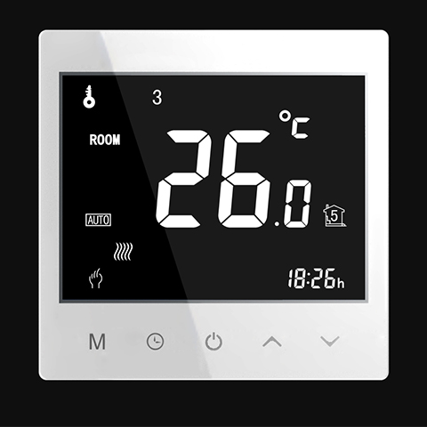 觸摸式液晶采暖溫控器R3382,采用國際*********的微電腦控制芯片,通過溫控器內(nèi)部或外部的高精度傳感器,檢測溫度,并實時與用戶所設定的參數(shù)進行比較,自動開啟、關閉加熱設備,以達到保持室內(nèi)恒溫的目的。每天可設置6個時段和對應的設置溫度,或可以選擇手動模式。特有的低溫保護功能,當室內(nèi)溫度低于最低保護溫度時,打開加熱設備,使電器設備在合理的溫度下工作,延長設備的使用壽命,使系統(tǒng)更加安全、可靠、節(jié)能。系列采暖專用多功能大屏幕液晶顯示室內(nèi)溫控器,采用微電腦控制技術,以室內(nèi)溫度和設定溫度的比較結(jié)果,通過上位機遠程采集監(jiān)控